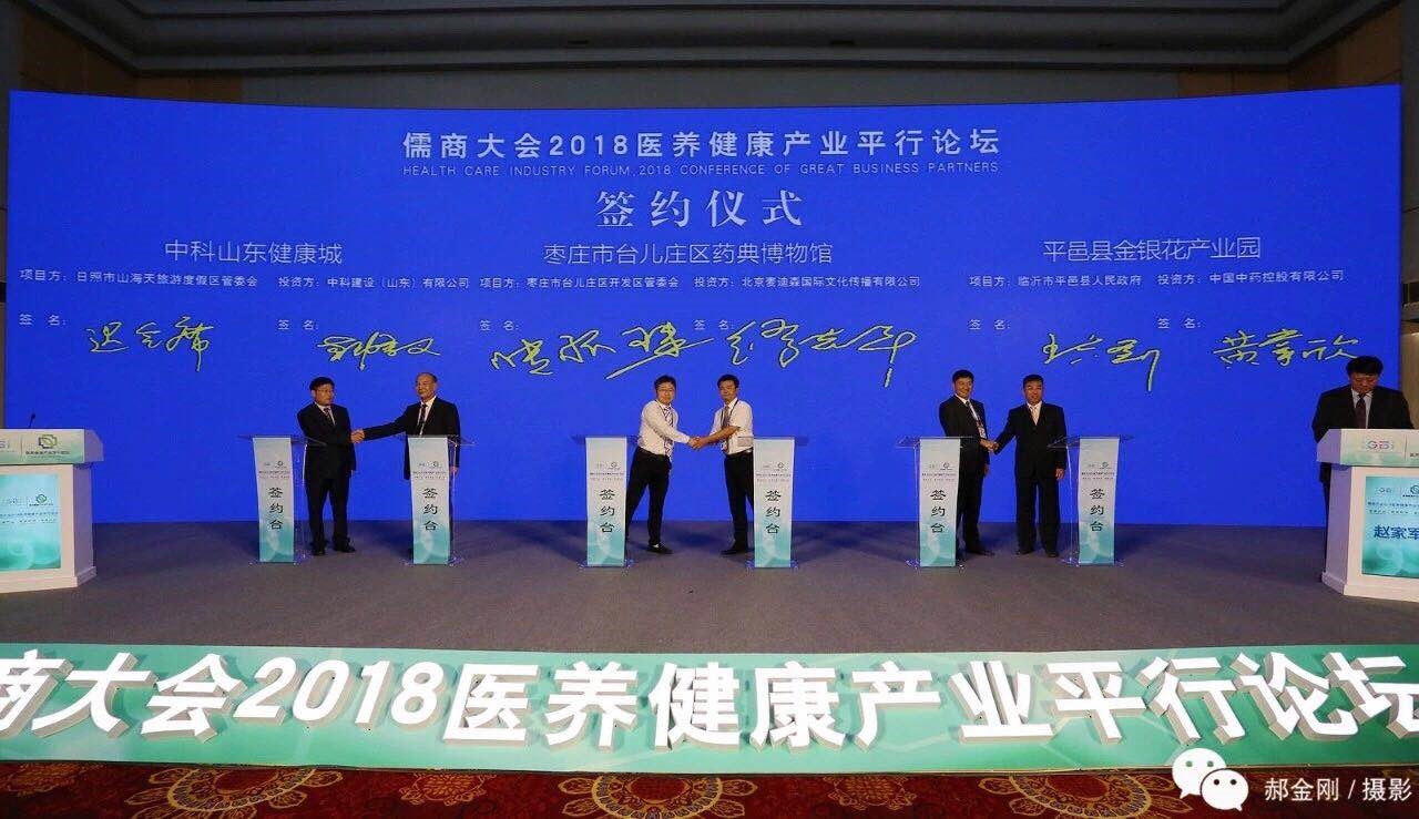 9月29日,山东省卫生计生委组织召开了儒商大会2018医养健康产业平行论坛,本次论坛以“健康产业 健康动能 健康山东“为主题,包括1位诺贝尔奖获得者、2位世界医疗健康前沿领域顶级科学家、5位“两院”院士在内的200多位海内外医养健康领域知名专家学者、相关政府领导参加了论坛。中药控股副总裁黄掌欣出席论坛并代表中药控股与山东省临沂市平邑县副县长王立剑签署了《中国中药平邑金银花项目合作意向书》。