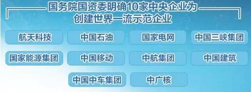 比如,中央企业的兼并重组、信息公开等试点已全面完成。航天科技、中建集团等10家中央企业入选创建世界一流示范企业试点。