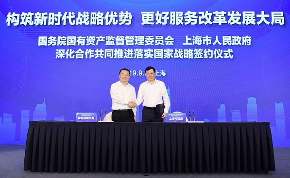 9月5日,国务院国资委与上海市政府在沪签署深化合作共同推进落实国家战略协议,共同深入学习贯彻习近平新时代中国特色社会主义思想、贯彻落实习近平总书记考察上海重要讲话精神,以深化央沪合作、做强做优做大国有企业、共同实现高质量发展的现实举措,共同构筑新时代战略优势、更好服务国家改革发展大局和经济社会发展全局。中共中央政治局委员、上海市委书记李强出席签约仪式并讲话。国务院国资委党委书记、主任郝鹏在签约仪式上讲话,并与上海市委副书记、市长应勇签署协议。上海市委常委、常务副市长陈寅主持签约仪式。国务院国资委副主任、党委委员任洪斌,上海市委常委、副市长吴清分别介绍了有关情况。