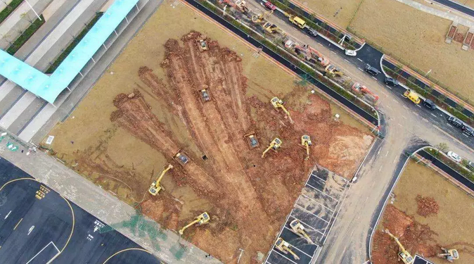 火热的雷神山医院建设现场。