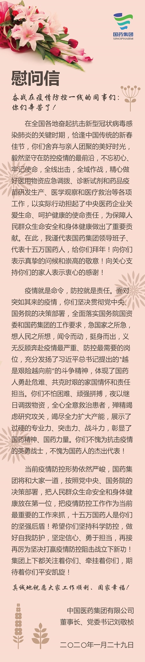 日本做爱 刘敬桢董事长致奋战在疫情防控一线的同事们的慰问信