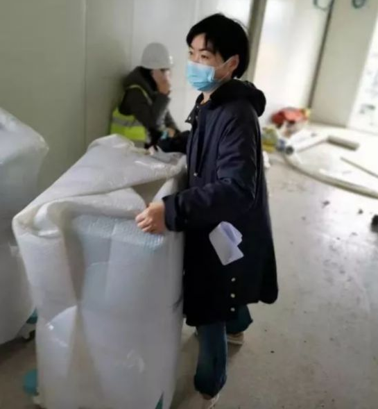 国药卫勤公司质量部负责人叶丽娟得知医院急需工作人员后,放弃休假,主动请缨从安徽老家开车返回武汉抗疫一线,并在医院现场组织九人的工作团队。他们中有有青年志愿者,有货车司机,有装修工人,甚至连环卫工人都参与到装卸和搬运的工作中。他们不辞辛苦,不计报酬,在库房和医院间连续往返工作24个小时,彻夜装卸搬运货物五百余件。任务紧急,人力不足,工地现场没有叉车等运输工具,甚至连道路都尚未铺好。在这种环境下,大家硬是肩挑手扛,用人力一步步把上百斤的医疗物资扛到病房。