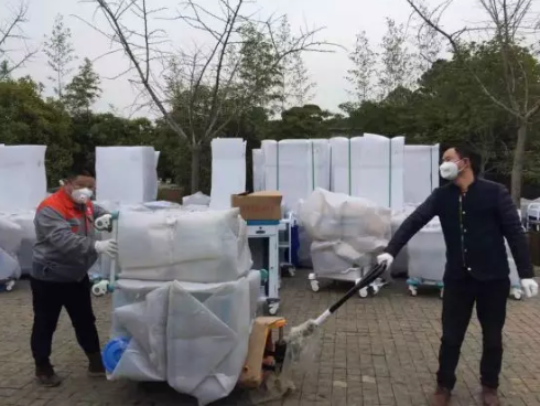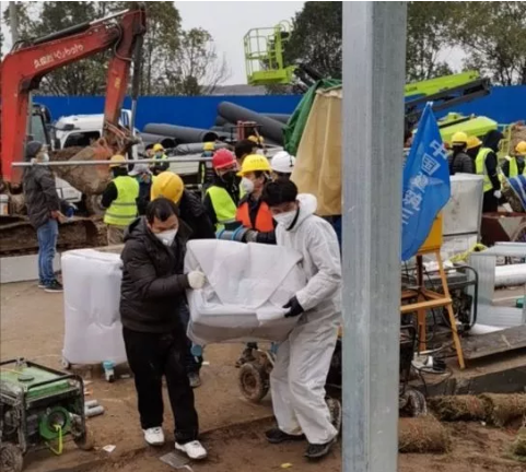 在接到火神山医院的特殊任务后,国药卫勤迅速调拨产品,在运输条件紧张、资源紧缺的情况下克服重重困难,不仅按时完成了产品供应任务,还在医院人力不足的情况下,主动承担起运送物资的任务。