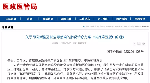 第五版方案中还进一步明确了中药在这次疫情中发挥的重要作用,国家卫建委、国家中药管理局要求各有关医疗机构在医疗救治工作中积极发挥中医药作用,加强中西医结合,建立中西医联合会诊制度,促进医疗救治的良好效果。