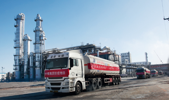 煤电油气运和粮油副食产品等基础产品服务稳定供应,是疫情防控工作的重要保障。中粮集团快速调整产能,全力复工生产,加强米面油肉乳酒精等产品市场供给,服务疫情防控,保障人民群众正常基本生活。图为2020年2月3日,中粮集团转产发运酒精消毒剂。 国务院国资委供图