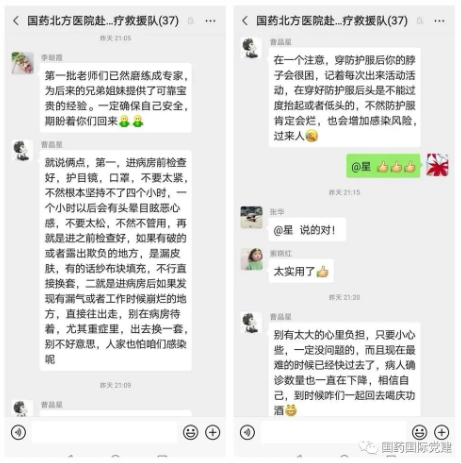 1月28日、2月20日,国药北方医院先后派出援鄂医疗队两批,共20人,包括医生5名,护士15名。第一批医疗队8名队员已在湖北荆门市开展临床救治工作20天,累计参与救治的新冠肺炎确诊患者出院已达40余人。你们是最美“逆行者”,是你们用大爱诠释了不惧生死,勇往直前的职业信仰,是你们用实际行动践行了“关爱生命、呵护健康”的国药精神!