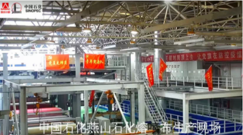 2月24日,中国石化与国机恒天集团迅速合作,筹建10条熔喷无纺布生产线,安排中国石化下属燕山石化在半个月内建成一座年设计生产能力为14400吨的熔喷无纺布生产。