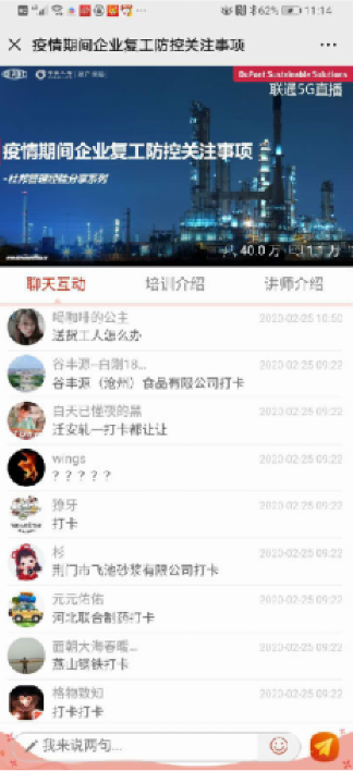 2月25日上午,在全国企业陆续复工复产之际,中国联通政企BG利用云公司开发的“云视频(智享版)”产品,助力混改合作伙伴中国人寿举办了针对安责险客户的疫情期间安全复工复产在线公益培训。全国2100余家工商企业共计40余万人次参加了此次在线直播培训。云公司“云视频(智享版)”产品为此次培训提供全国范围内高质量的在线会议服务,在助力疫情防控和保险企业数字化转型的同时,也让更多的企业了解到了联通的创新服务,感受到了联通的企业担当。