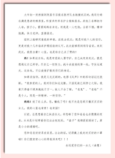 鞍钢总医院援鄂医疗队护士曲慧写给母亲的家书