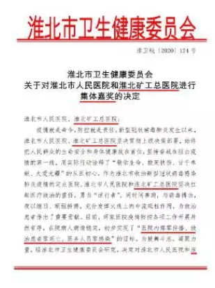 2月23日,华润医疗淮北矿工总医院抗击疫情获淮北市卫生健康委员会嘉奖。