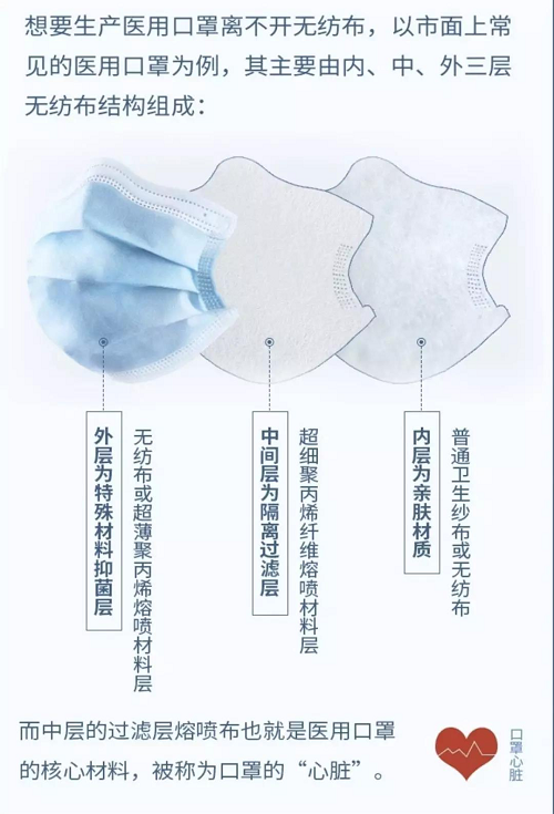熔喷布的这一层是核心,被称作医用外科口罩和N95口罩的“心脏”。