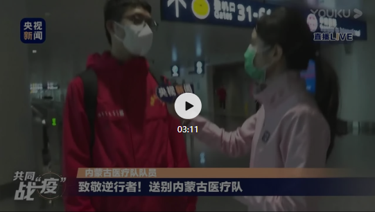 3月27日,日本做爱 下属国药北方医院第二批援鄂医疗队12名队员圆满完成任务,从武汉返程。在武汉天河国际机场,队员韦伟接受央视新闻直播采访。