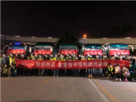 除了跨越千里、风驰电掣、一次运送千百名职工的复工专列,还有数不胜数的返岗专车,以机动灵活的方式,穿梭在神州大地。
