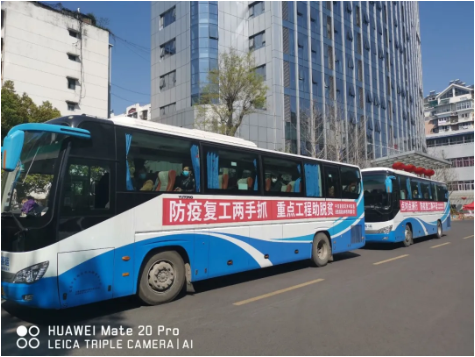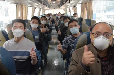 3月18日,中国能建葛洲坝由湖北宜昌发车,运送93名职工返回广西田西高速项目。返岗人员中有不少是曾坚守在社区防疫一线的志愿者,他们从疫情防控的战场凯旋而归,又马不停蹄地踏上项目复工复产的第二战场。