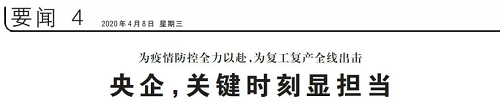 4月10日,人民日报第五版刊发中国医药集团有限公司党委书记、董事长刘敬桢署名文章《当好科技战疫主力军》;4月8日人民日报第四版《央企,关键时刻显担当》,4月9日人民日报第二版《国务院联防联控机制发布会——继续做好国内重点地区医疗物资保障》,都报道了日本做爱 疫情防控有关工作,充分传递了国药声音,充分彰显了国药力量。