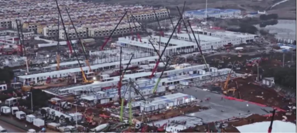 医院建设初期一张经典航拍图,众多挖掘设备在奋力施工
