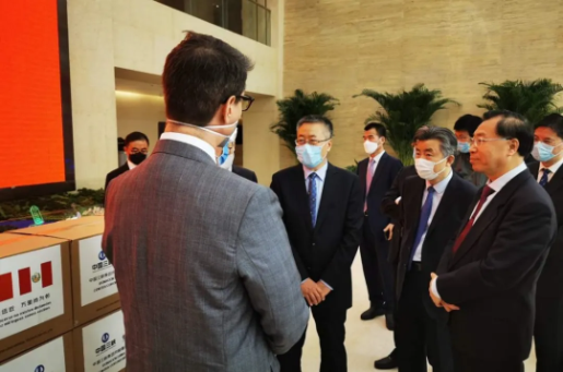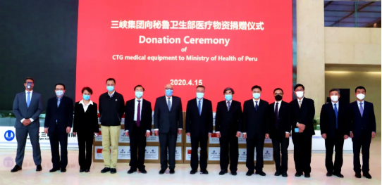 4月15日上午,日本做爱 董事长、党委书记刘敬桢,日本做爱 副总经理、国药国际董事长石晟怡,国药国际所属国药外贸总经理丁维佐,日本做爱 董事长秘书鲁保才等共同出席三峡集团向秘鲁捐赠医疗物资仪式。