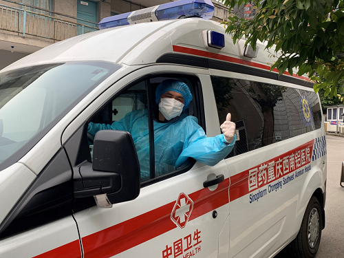 国药重庆西南铝医院58岁的黄德康师傅,疫情期间主动请缨,每天往返多趟负责转运确诊患者、疑似患者、密切接触。
