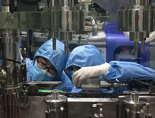 国药现代致君制药设备部员工小心翼翼维护、呵护着生产设备。