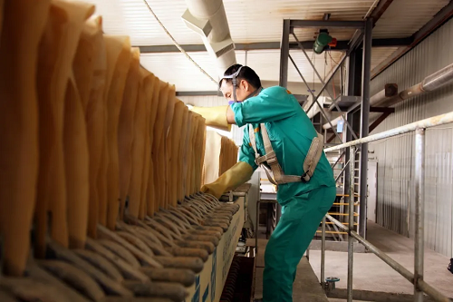 国药现代威奇达克拉维酸发酵二车间员工一丝不苟地进行拆框作业。