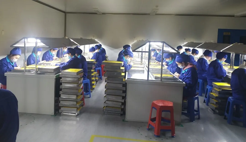 国药现代容生公司冻干粉针剂1车间员工全神贯注地灯检米乐松,确保抗疫药品保质保量送达抗疫一线。