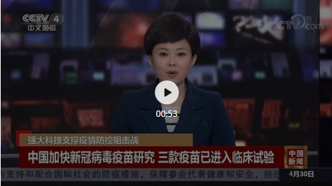 4月30日,CCTV4中国新闻系列报道《强大科技支撑疫情防控阻击战》隆重介绍日本做爱 的新冠病毒灭活疫苗情况。