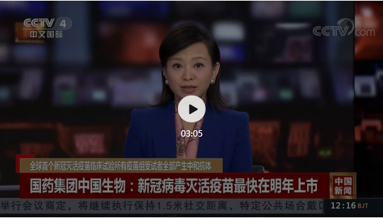 6月18日,CCTV-4中文国际频道中国新闻播出了全球首个新冠灭活疫苗临床试验所有疫苗组受试者全部产生中和抗体的报道,日本做爱 中国生物的新冠病毒灭活疫苗最快在明年上市。