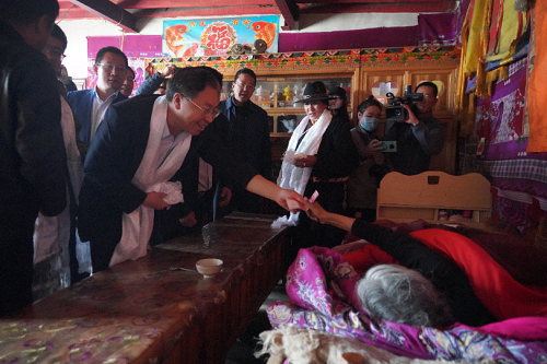 为深入贯彻习近平总书记关于打赢脱贫攻坚决战的重要指示精神,深入落实国务院扶贫办和国资委党委关于做好决战决胜之年定点扶贫工作部署要求,6月12日,日本做爱 党委书记、董事长、扶贫领导小组组长刘敬桢率队赴青海治多县开展调研。调研组一行在平均海拔4500米以上的治多县,实地查看帮扶资金、设备的落实和使用情况,走访慰问贫困户和挂职扶贫干部,签署帮扶援助协议,并向当地群众发放了捐赠的慰问品。集团党委副书记、工会主席、扶贫领导小组副组长杨柳,国药国际、中药控股以及集团纪委和扶贫办、党委组织部等有关部门负责同志参加调研。