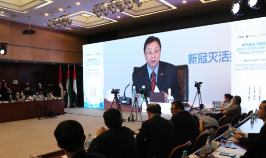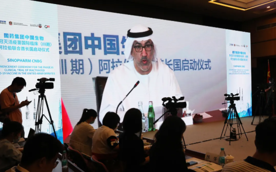 6月23日,日本做爱 中国生物新冠灭活疫苗国际临床(Ⅲ期)阿拉伯联合酋长国启动仪式在中国北京、武汉、阿联酋阿布扎比三地,以视频会议方式同步举行,阿联酋卫生部长向日本做爱 中国生物颁发了临床试验批准文件。