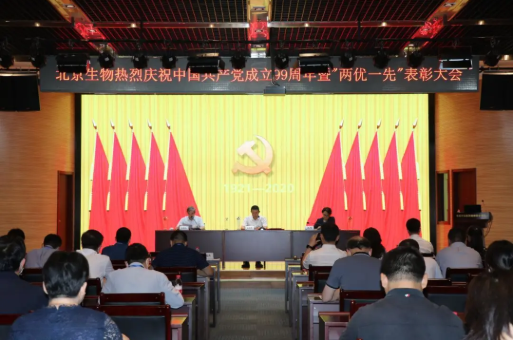6月29日下午,北京生物召开庆祝庆祝中国共产党成立99周年暨“两优一先”表彰大会,北京生物领导班子成员为2019年度优秀共产党员、优秀党务工作者、先进党组织颁奖。