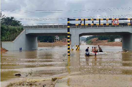 接到消息后,中建五局园林江西景德镇项目积极响应号召,迅速调集抢险人员前往新港大道铁路桥涵下,奋战至夜间8点,低洼路段抢通完毕,滞留车辆顺利通过。