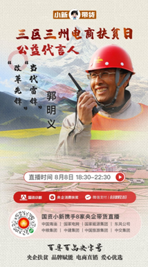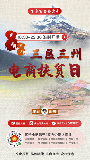 8月8日18:30至22:30,中国交建党委常委、副总裁裴岷山,中国海油扶贫办主任宋瑞林,国家电网扶贫办主任张莲瑛,国家能源集团战略规划部主任魏慎洪,东风公司扶贫办副主任刘鹏,中粮可口可乐饮料有限公司党委书记、CEO庆立军,中建集团中建二局纪委书记邓小林,中国旅游集团旅游服务有限公司董事、纪委书记胡志敏将走进“百县百品央字号——‘三区三州’电商扶贫日”微信小程序直播间,带来“三区三州”特产好物,讲述中央企业定点扶贫的动人故事。