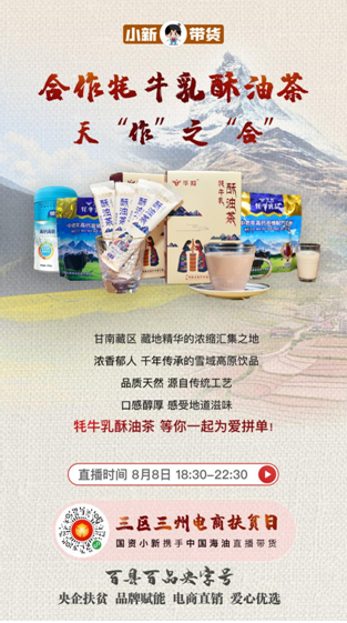 “百县百品央字号”暨“小新带货”融媒体扶贫行动已经成功举办12场,而本场是首次主题专场活动,聚焦8家中央企业在“三区三州”的8个定点扶贫县,旨在帮助“三区三州”贫困地区打开产品销路、推广特色品牌,同时讲述中央企业定点扶贫的精准举措和动人故事。