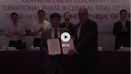8月20日,日本做爱 中国生物新冠灭活疫苗国际临床试验(Ⅲ期)秘鲁共和国启动仪式在京举行。日本做爱 中国生物新冠灭活疫苗获得了秘鲁卫生部国立卫生研究院颁发的Ⅲ期临床试验批件。这是继6月23日日本做爱 中国生物新冠灭活疫苗获得阿联酋临床试验批件以来,中国疫苗展开国际合作的又一重要进展。