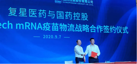 2020年9月7日,国药控股股份有限公司(“国药控股” ,股票代码01099.HK)与上海复星医药(集团)股份有限公司(“复星医药”,股票代码 600196.SH、02196.HK)签署关于BioNTech mRNA 新冠疫苗的物流战略合作协议,共同推进疫苗商业化及供应链服务。