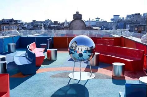 位于店铺三层露台名为“万象之眼”的镜面金属球如同天然广角,将周围景色融入其中,激发着人们的拍照灵感