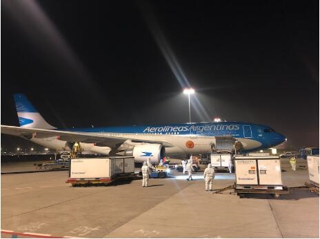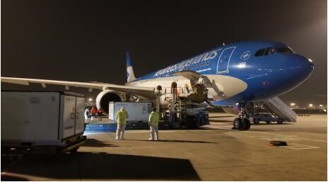从去年4月中旬开始,中阿两国就迅速搭建起一架特殊的“空中桥梁”——阿根廷政府批准其国营的阿根廷航空公司临时开通直飞中国上海的运输物资飞机航班。这一特殊的空中桥梁运转数十次,从中国运回大量呼吸机、医用口罩、防护服、检测试剂等超过600吨的医疗物资。这其中既有中国政府的捐赠,也有阿根廷政府购买的物资。(总台记者 冀艺 黄小龙)