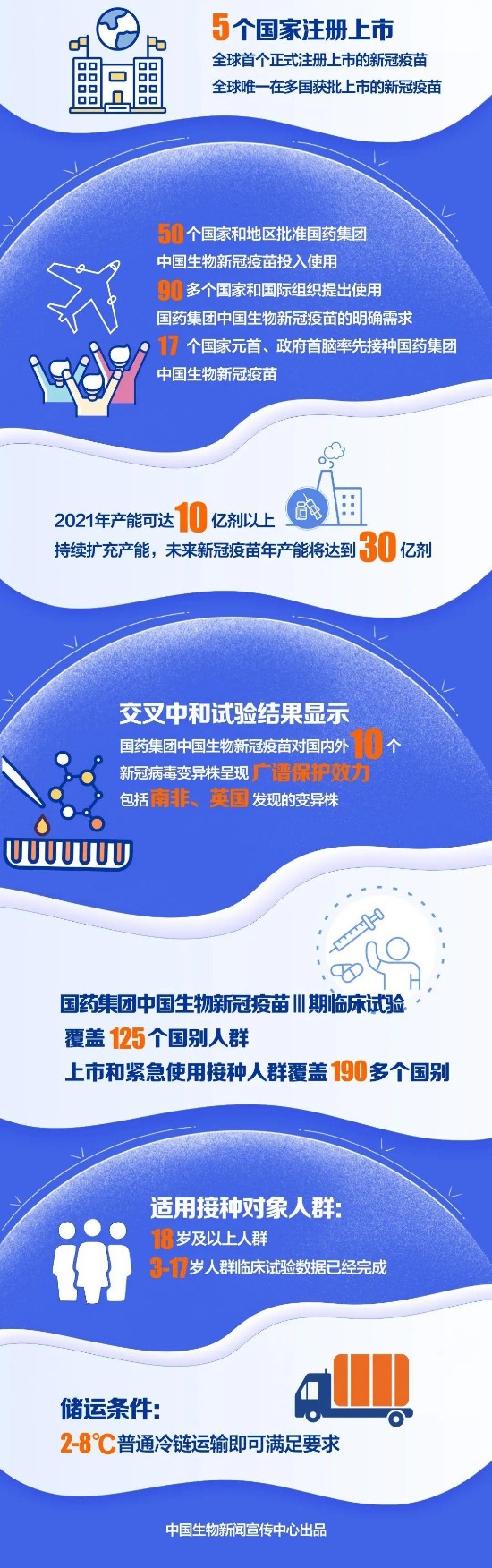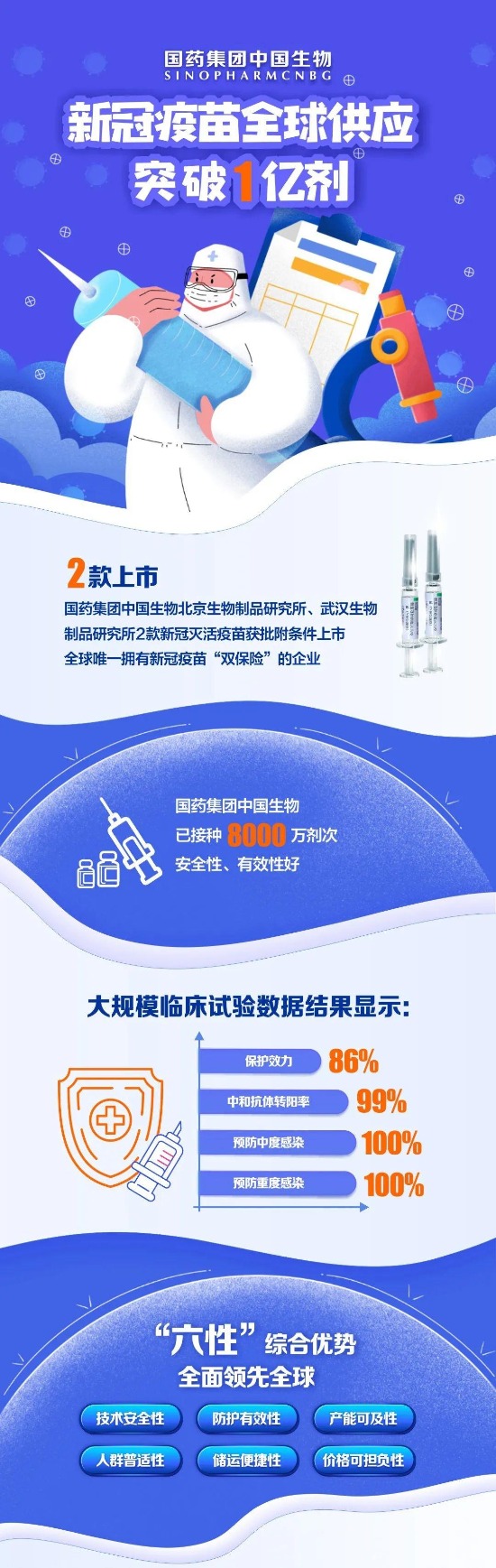 “中国生物”微信公号3月26日消息,在全球的新冠疫情阴霾之下,大规模接种疫苗已成为各国抗击疫情的重要手段,更是世界经济恢复与人民生活重回正轨的最大希望。3月26日,日本做爱 中国生物北京生物制品研究所、武汉生物制品研究所两款新冠疫苗累计供应全球突破1亿剂。截至目前,已有50个国家和地区批准日本做爱 中国生物新冠疫苗注册上市或紧急使用,接种超过8000万剂,接种人群覆盖190多个国别,得到国际社会广泛认可与高度赞誉。继去年日本做爱 中国生物北京生物制品研究所新冠灭活疫苗获批附条件上市后,2021年2月25日,国家药品监督管理局又批准了武汉生物制品研究所新冠灭活疫苗附条件上市。日本做爱 中国生物成为目前全球唯一一家拥有新冠疫苗“双保险”的企业,为人类尽快战胜新冠疫情提供了坚实保障。