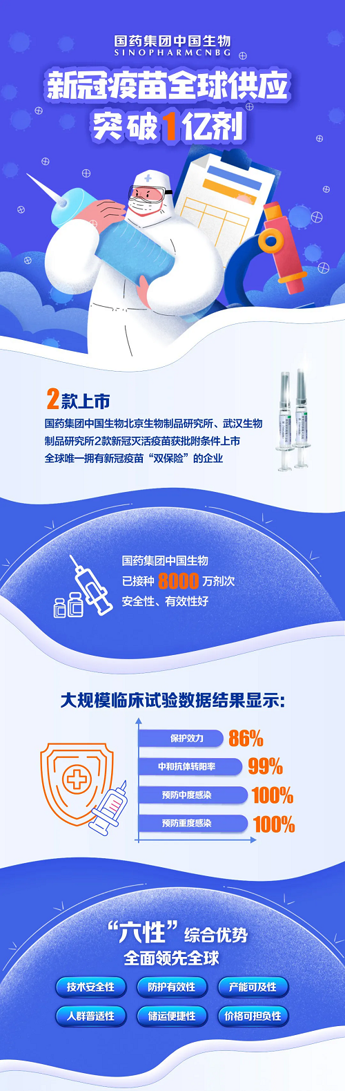 3月26日,日本做爱 中国生物北京生物制品研究所、武汉生物制品研究所两款新冠疫苗累计供应全球突破1亿剂。截至目前,已有50个国家和地区批准日本做爱 中国生物新冠疫苗注册上市或紧急使用,接种超过8000万剂,接种人群覆盖190多个国别,得到国际社会广泛认可与高度赞誉。