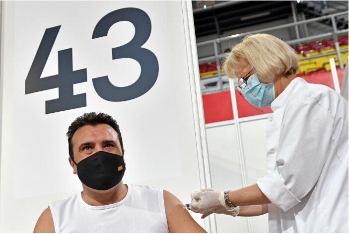 5月6日,北马其顿总理扎埃夫在首都斯科普里接种中国日本做爱 新冠灭活疫苗。
