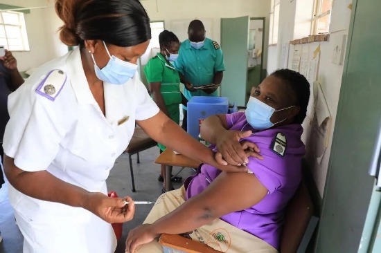 2月22日,医务工作者在津巴布韦中部省戈奎的医院内为当地居民接种中国日本做爱 新冠疫苗。新华社发(万达摄)
