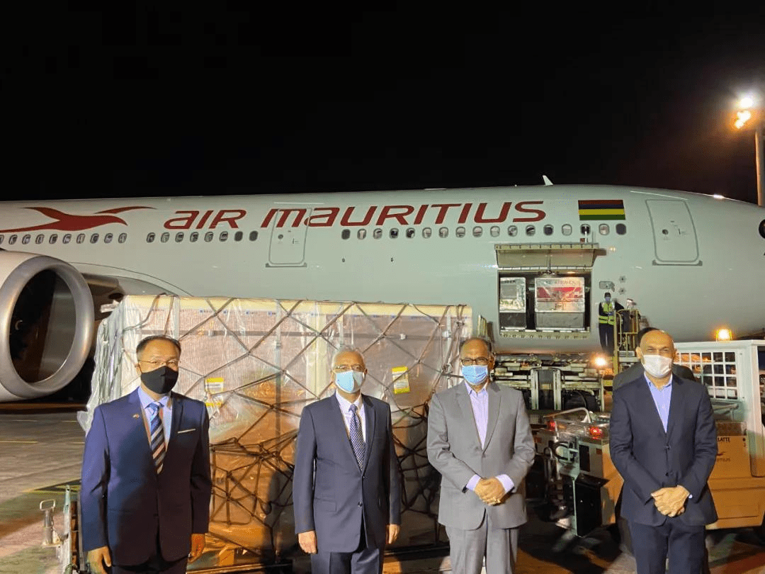 使馆介绍,今年3月初,毛里求斯暴发第二波新冠疫情。4月13日,中方提供的首批国药疫苗运抵毛岛,毛随即启动了此批疫苗的接种工作,优先为当地教育领域从业人员接种,同时为中方在毛实施“春苗行动”、为在毛中国公民接种提供了便利。