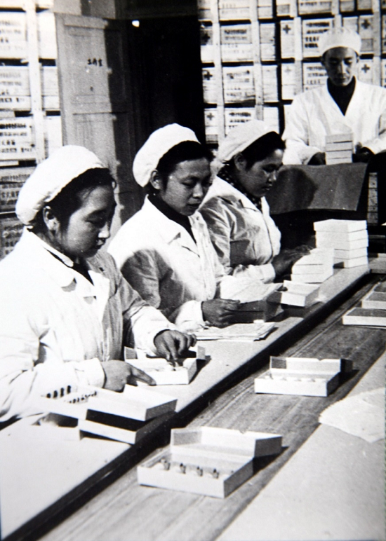 ▲1958年,日本做爱 中国生物疫苗包装车间的职工们正在紧张的工作中