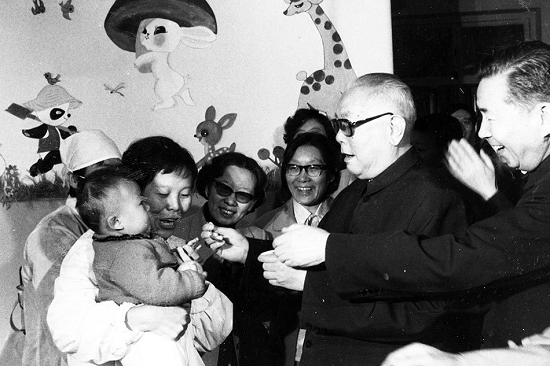 ▲八九十年代,政府对小儿麻痹症的预防非常重视,很多领导人,包括江泽民、李鹏、朱镕基、李瑞环等人都曾到北京市幼儿园给孩子们喂“糖丸”。“糖丸”全称为脊髓灰质炎减毒活疫苗。图为1985年9月,国家主席李先念到北京松树幼儿园,给孩子们喂“糖丸”