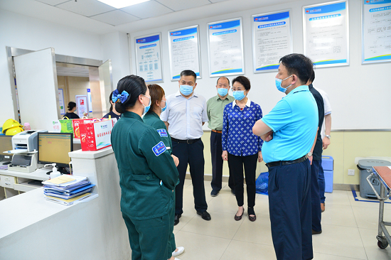 石晟怡一行还深入国药东风总医院、花果医院与医护人员亲切交流,详细了解伤员救治情况,并对全体医务人员争分夺秒,不辞辛苦,默默奉献的职业精神,以及国药东风医疗团队所表现出的高质量、高效率、高标准的应急处置能力给予了高度肯定。