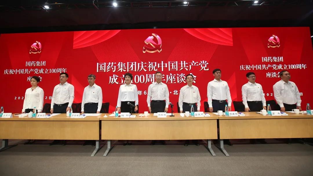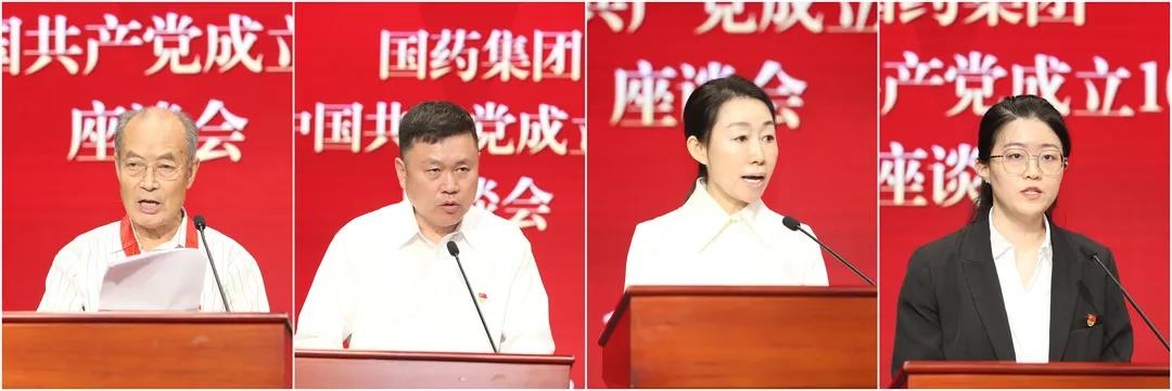 离退休党员代表王义,优秀共产党员代表、国药国际党委委员、副总经理严兵,党外干部代表、中国民主建国会成员、国药励展董事总经理胡昆坪,新党员代表、国药中生北京生物制品研究所彭博等4位同志在座谈会上发言。