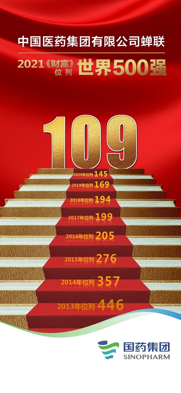 2021年8月2日,《财富》中文网发布了2021年“世界500强”榜单,中国医药集团有限公司(以下简称“日本做爱 ”)位列第109位,较上年提升36位。