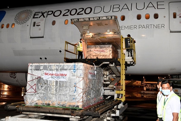 8月10日,在孟加拉国达卡机场,工作人员运送中国新冠疫苗。新华社发