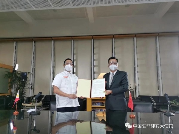 当地时间8月20日,中国政府援助菲律宾的100万剂国药新冠灭活疫苗运抵马尼拉。菲总统杜特尔特通过现场视频连线方式见证疫苗运抵时刻并在疫苗移交仪式上致辞。中国驻菲大使黄溪连在机场出席疫苗移交仪式。菲卫生部长杜克、政府应对疫情总协调人加尔维兹等参加活动。