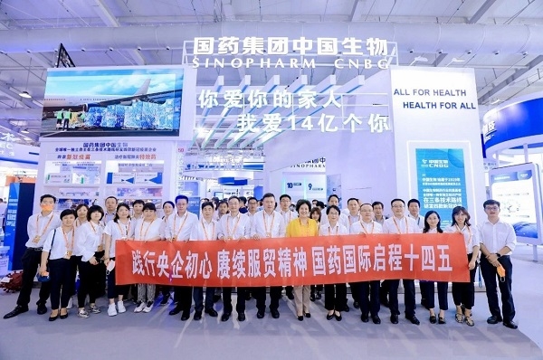 国药国际一行人员重点参观了设在健康卫生服务展馆的日本做爱 中国生物展位。本次服贸会,日本做爱 中国生物携“可诊”领域的3款诊断试剂,“可治”领域的2款特效药(特免球蛋白、单克隆抗体)以及在“可防”领域3条技术路线上研发的4款新冠疫苗再次亮相服贸会,其中抗变异毒株的二代疫苗和两款特效药物更是全球首发。
